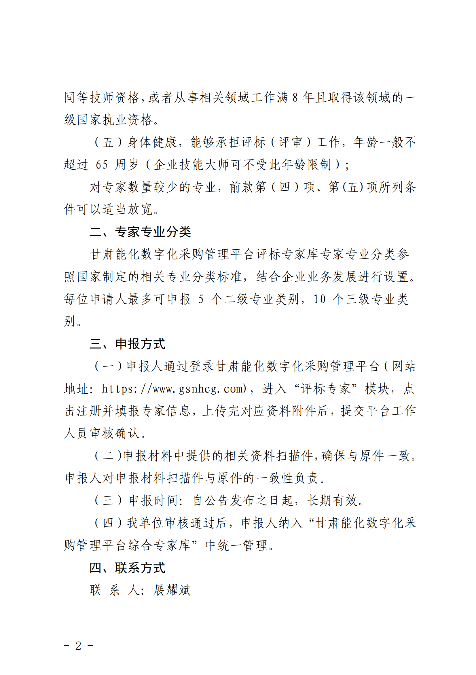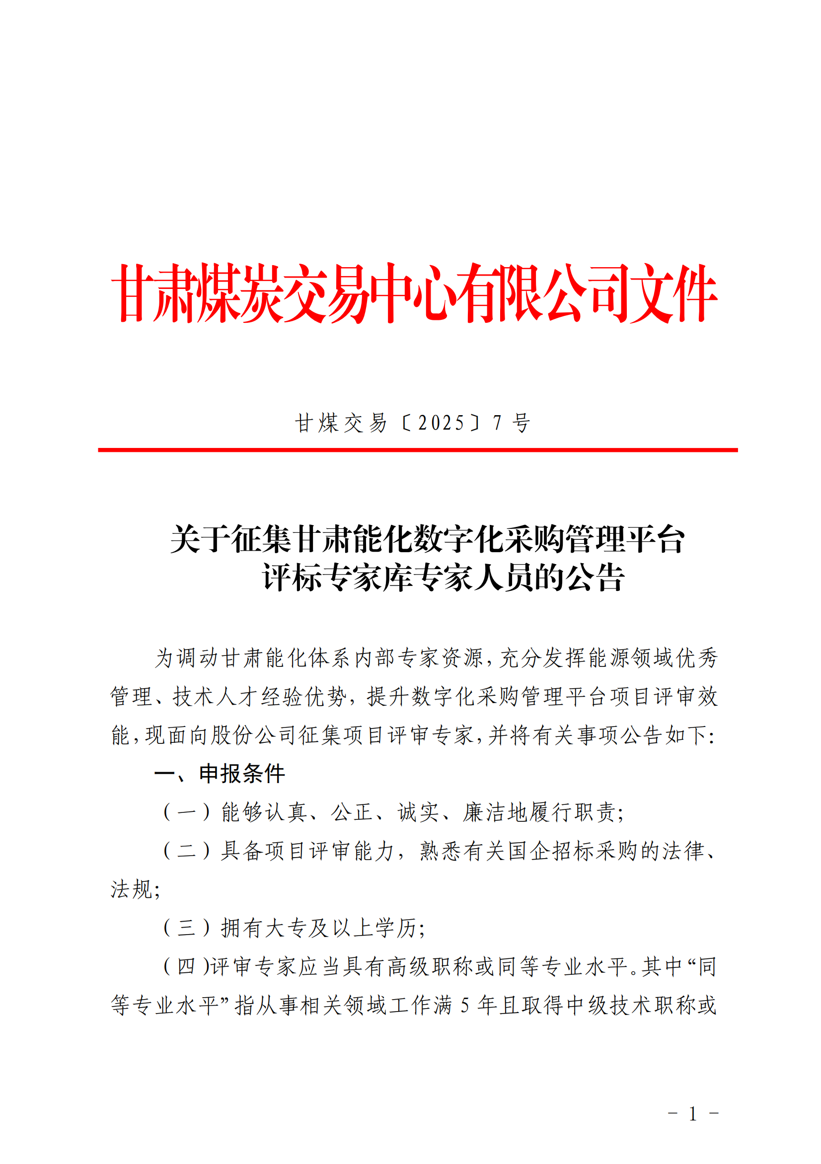 關(guān)于征集甘肅能化數(shù)字化采購(gòu)管理平臺(tái)評(píng)標(biāo)專家?guī)鞂<胰藛T的公告